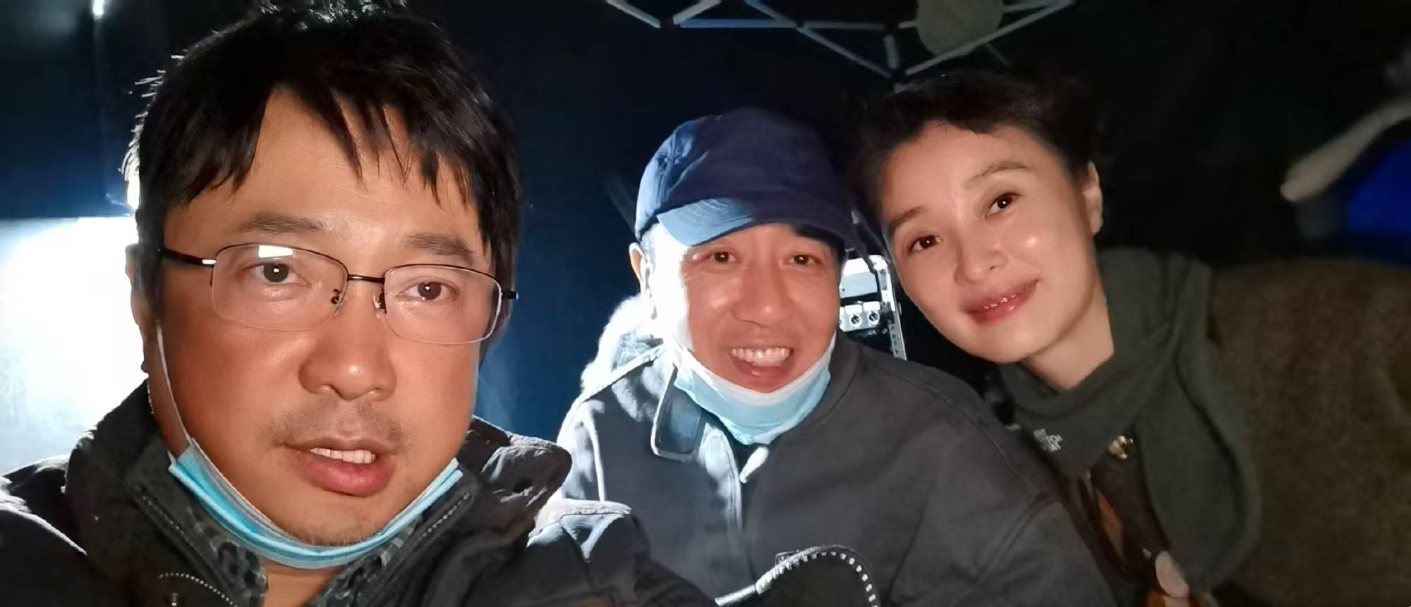 几乎在同样的地点拍戏,这怎么不是一种缘分呢?所以吴越和徐峥跨越这条河的障碍,合影留下了幸福时刻,于和伟也来凑热闹。