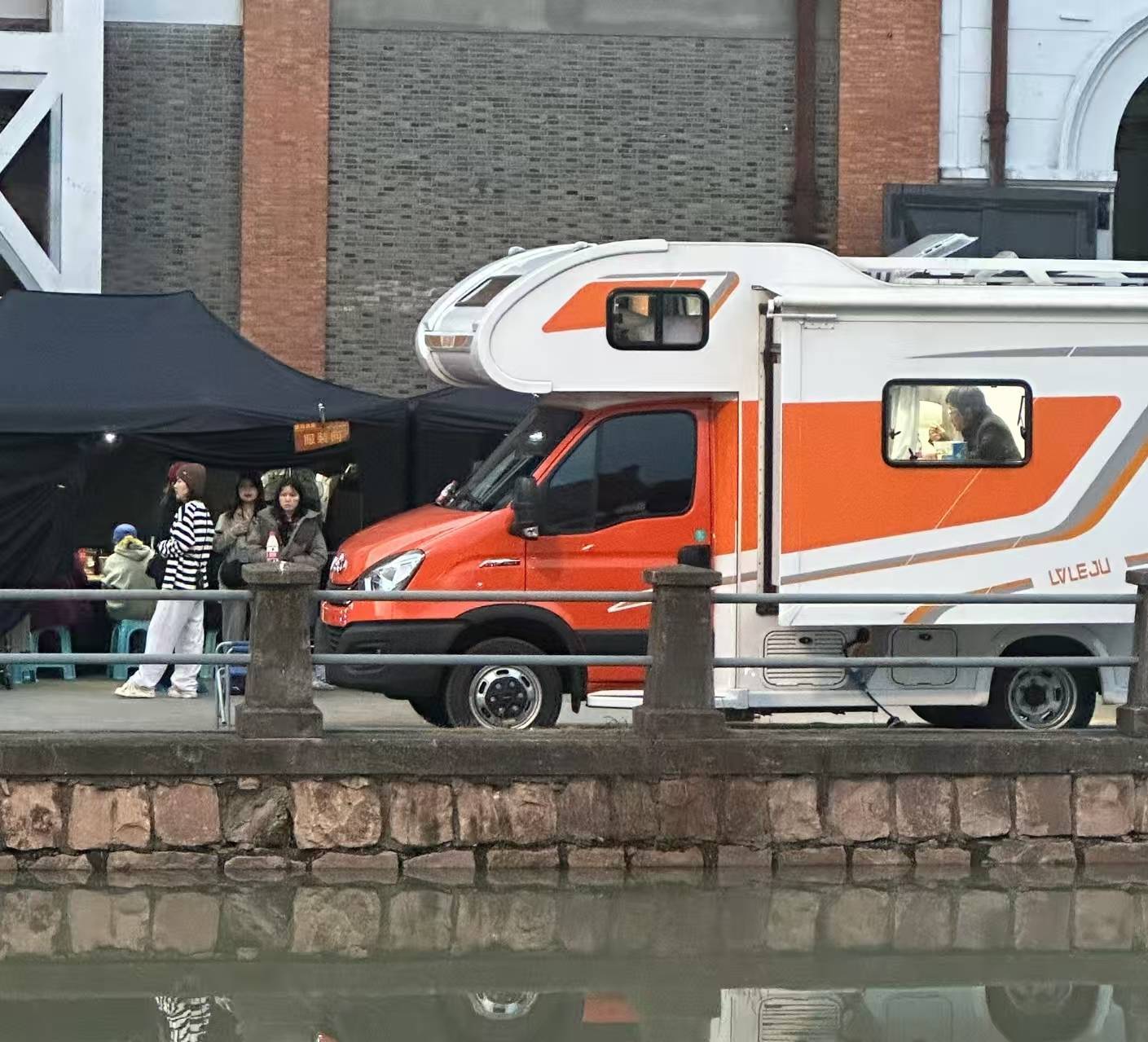 拍摄《沉默的荣耀》时,吴越经常坐在河边看剧本,一河之隔正忙着送快递的徐峥偷拍吴越,吴越也给正在房车里吃盒饭的徐峥定了歌。