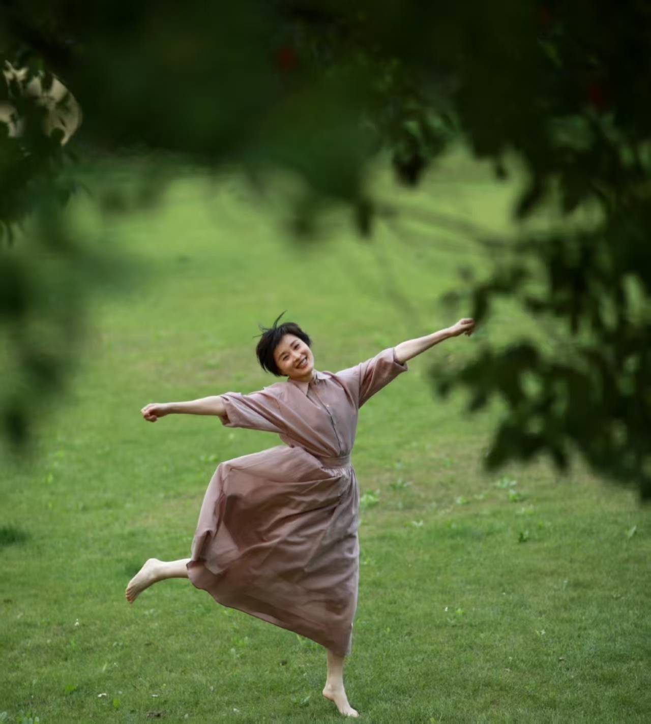 或许正是这种看淡了一切的心态,让吴越过得更如鱼得水,享受每一个当下,她可以在草地上随风起舞。