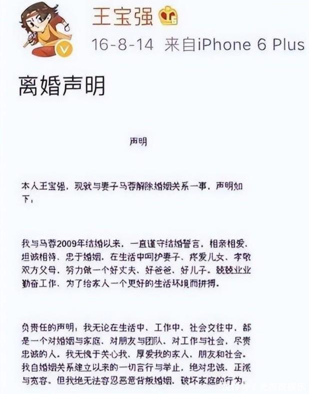 2016年8月14日,王宝强通过发布微博的方式宣告离婚事宜。他公开了马蓉存在出轨行为以及转移财产的情况。该条微博使得整个娱乐圈都为之震惊。公众的愤怒迅速扩散,几乎瞬间就对马蓉的各个方面产生了影响。马蓉从之前众人眼中认为幸福的太太,一下子转变成为被指责的背叛者以及财产盗窃者。